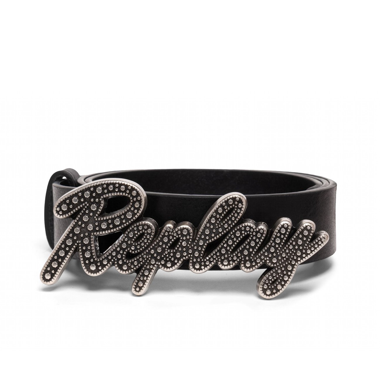 REPLAY WOMEN'S REPLAY BUCKLE PULL-UP LEATHER BELT IN BLACK