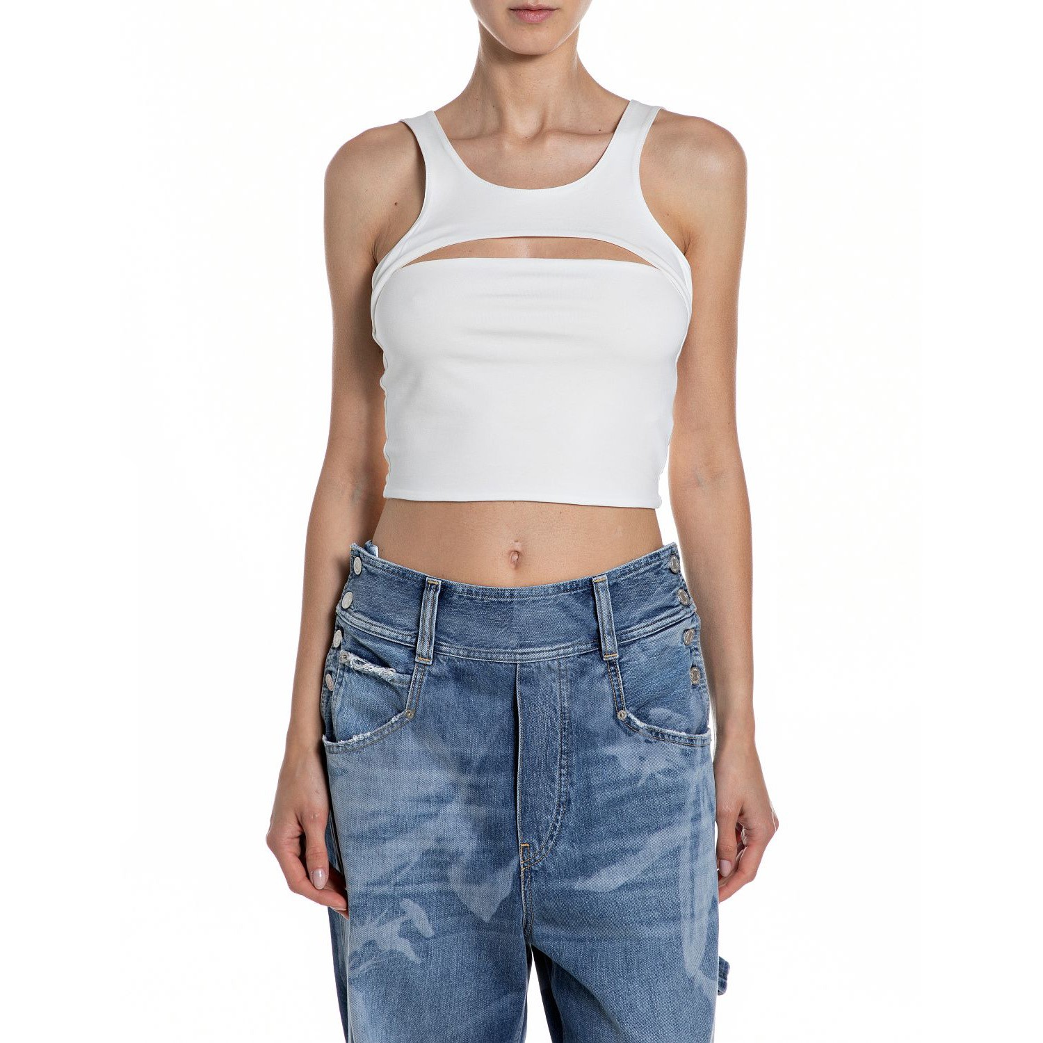 REPLAY WOMEN'S SLIM-FIT STRETCH JERSEY TOP IN NATURAL WHITE