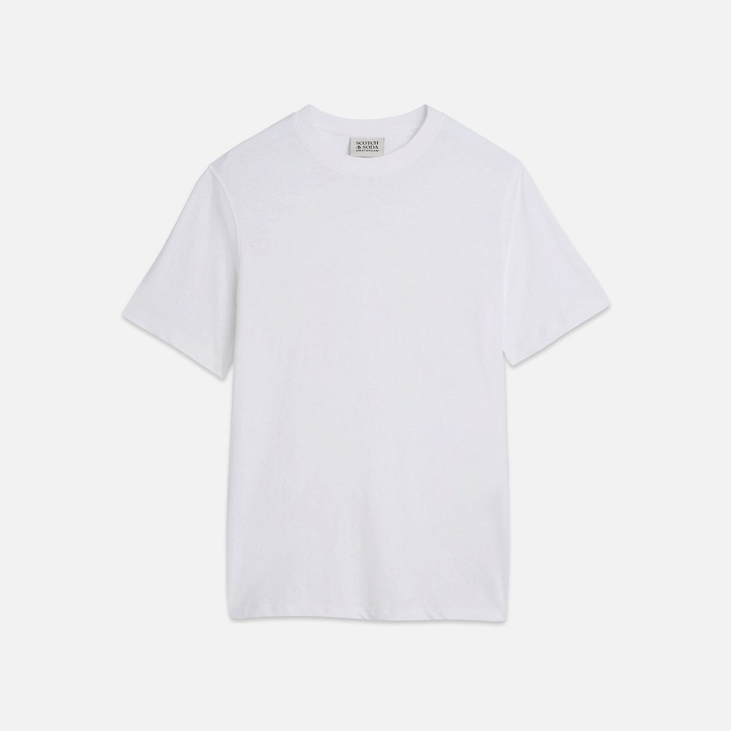 SCOTCH&SODA MEN'S 3 CROSSES COTTON/LINEN REGULAR FIT T-SHIRT IN WHITE/PASTEL
