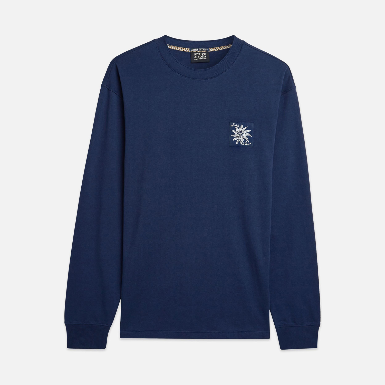 SCOTCH&SODA MEN'S BACK ARTWORK RELAXED-FIT LONG-SLEEVED T-SHIRT IN NAVY