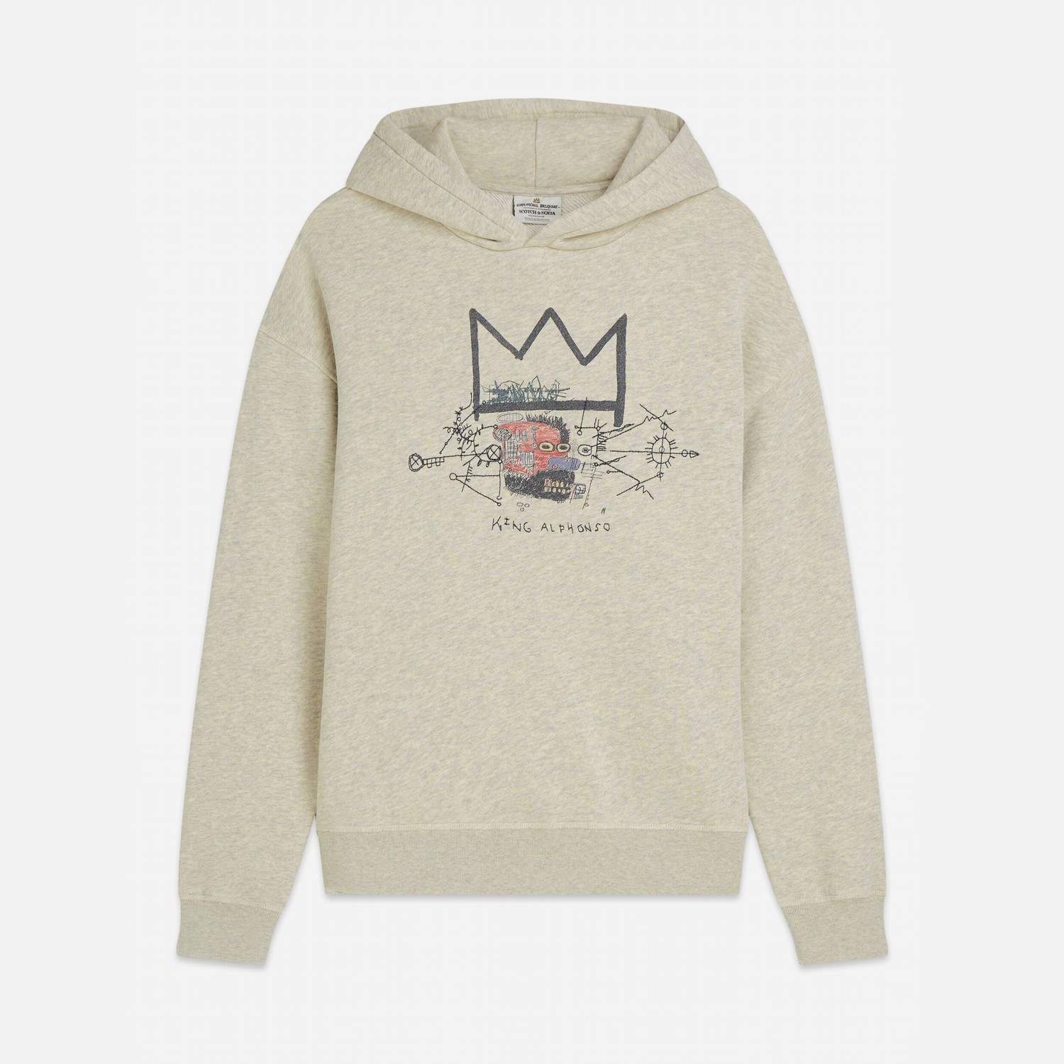 SCOTCH&SODA MEN'S BASQUIAT WASHED ARTWORK RELAXED-FIT HOODIE IN LIGHT PASTEL GREY