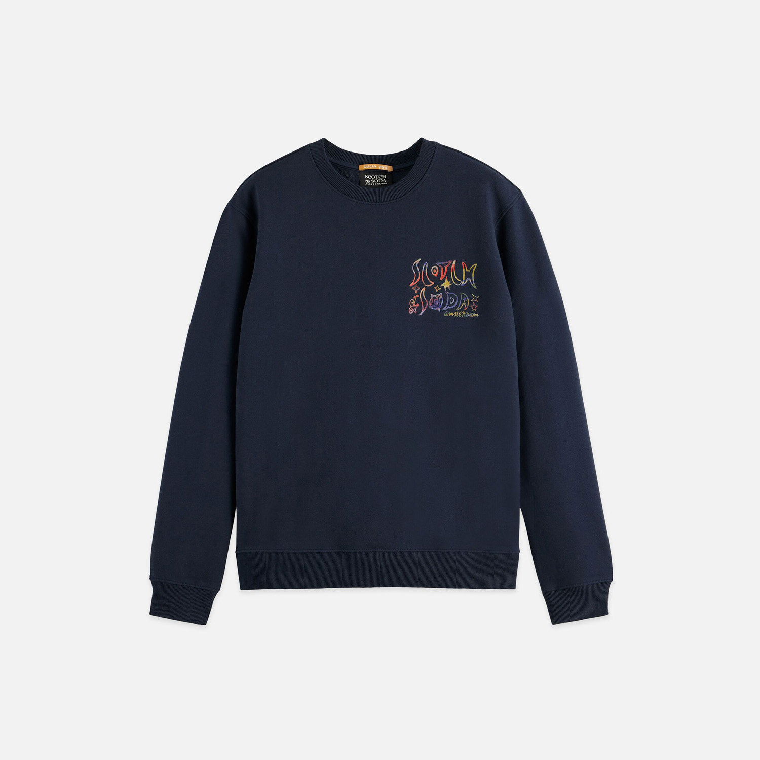 SCOTCH&SODA MEN'S FRONT AND BACK ARTWORK REGULAR-FIT SWEATSHIRT IN DARK BLUE