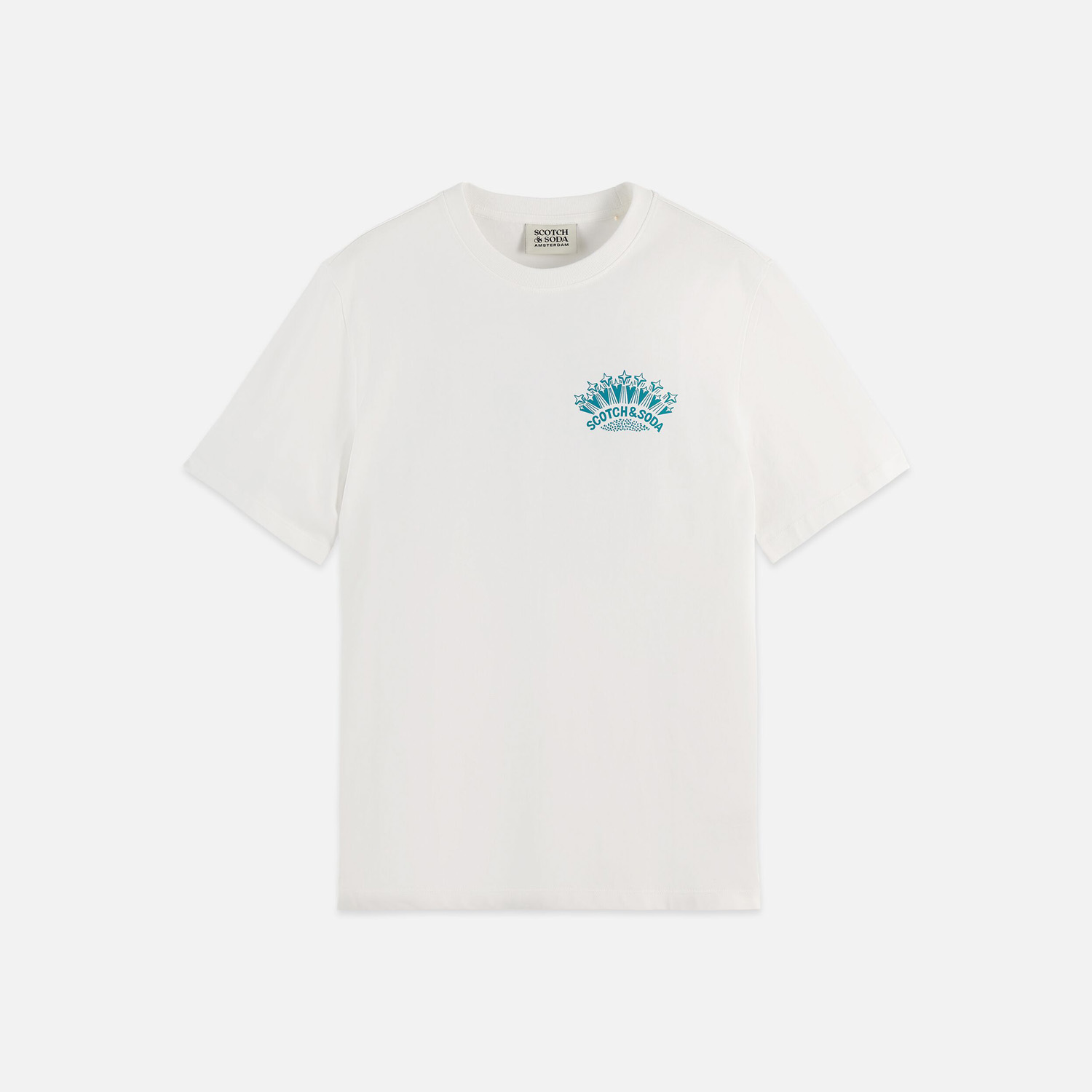 SCOTCH&SODA MEN'S FRONT AND BACK ARTWORK REGULAR-FIT T-SHIRT IN WHITE/PASTEL