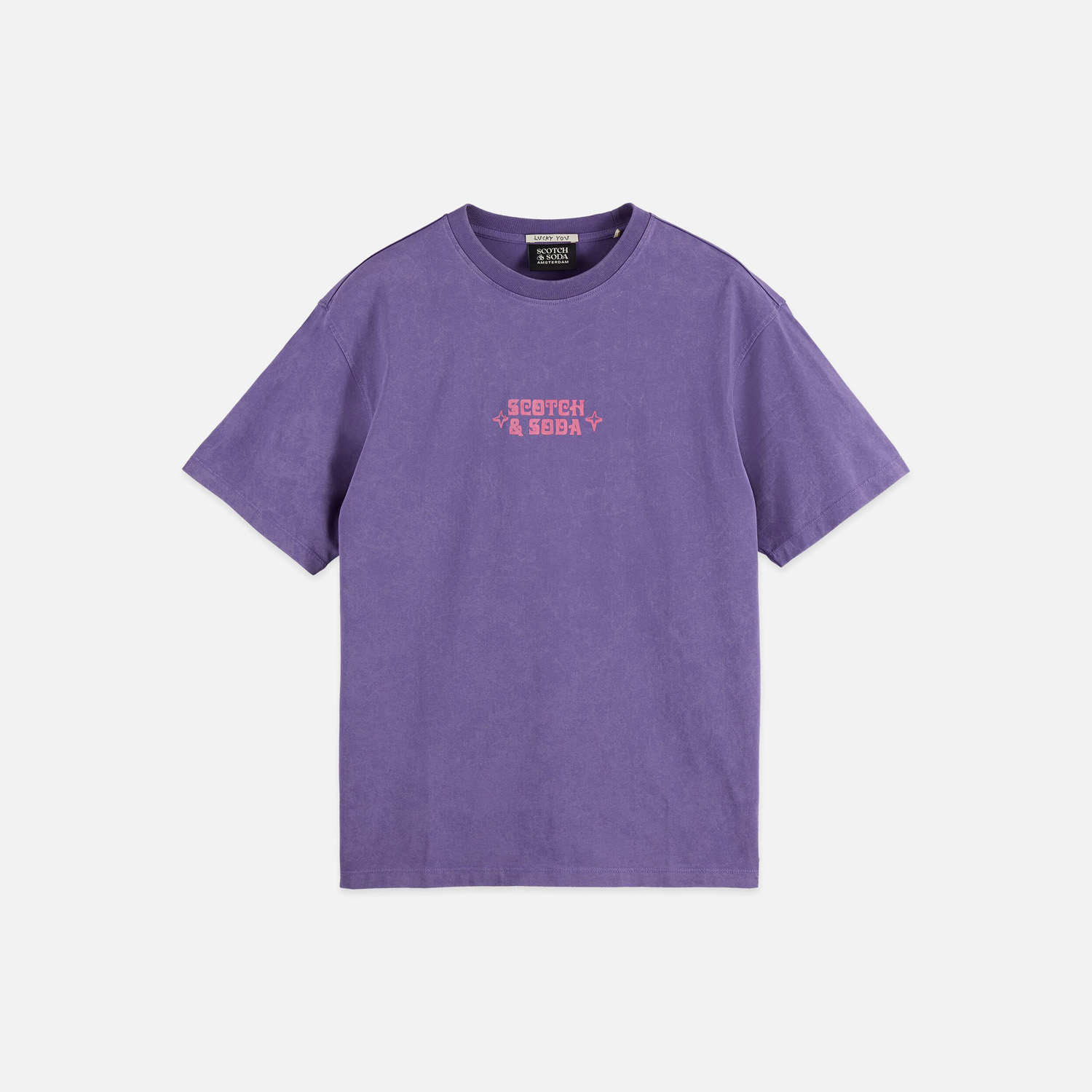 SCOTCH&SODA MEN'S FRONT ARTWORK RELAXED-FIT SNOW-WASHED T-SHIRT IN DARK PURPLE