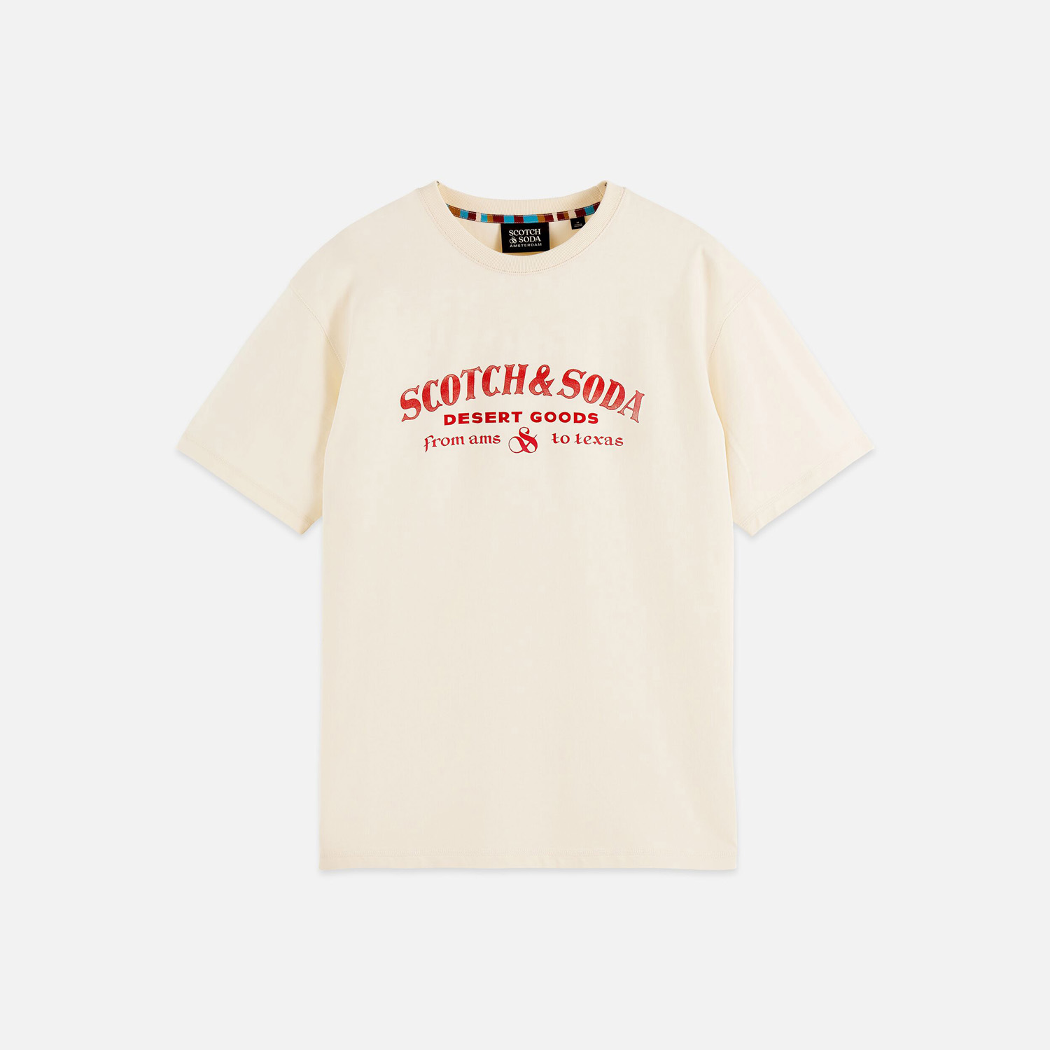 SCOTCH&SODA MEN'S FRONT ARTWORK RELAXED-FIT T-SHIRT IN LIGHT BEIGE
