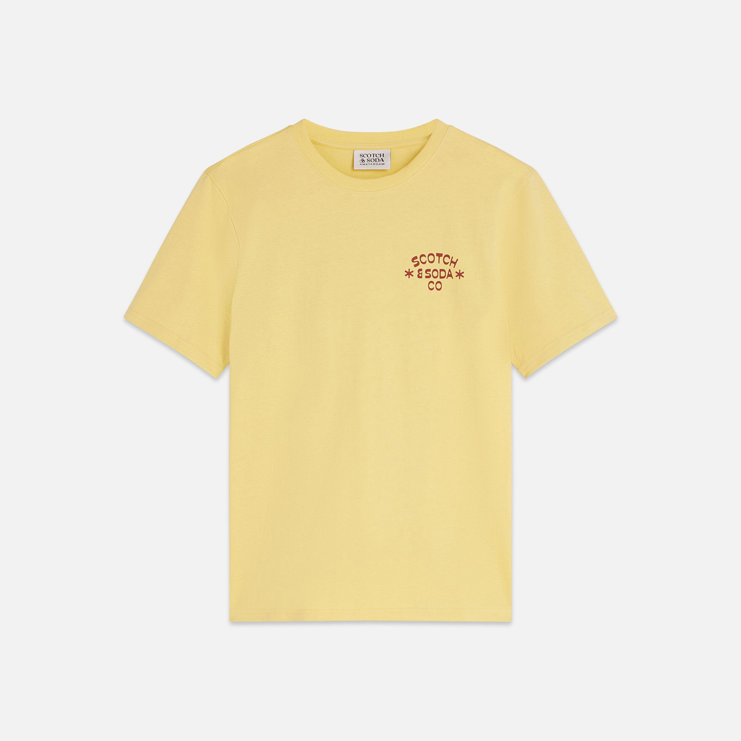 SCOTCH&SODA MEN'S LEFT CHEST ARTWORK REGULAR FIT T-SHIRT IN MEDIUM YELLOW