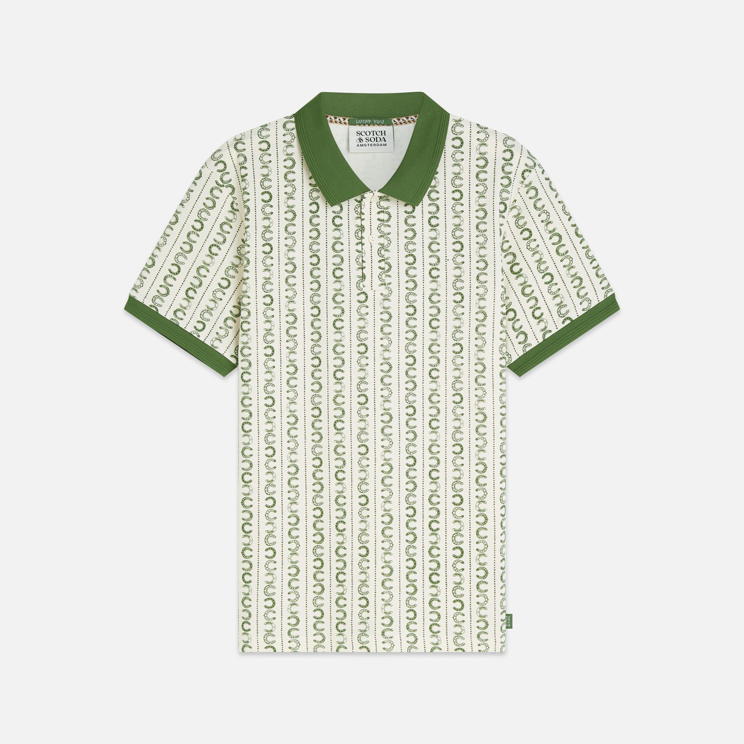 SCOTCH&SODA MEN'S MICROPRINTED REGULAR FIT POLO IN MEDIUM BEIGE