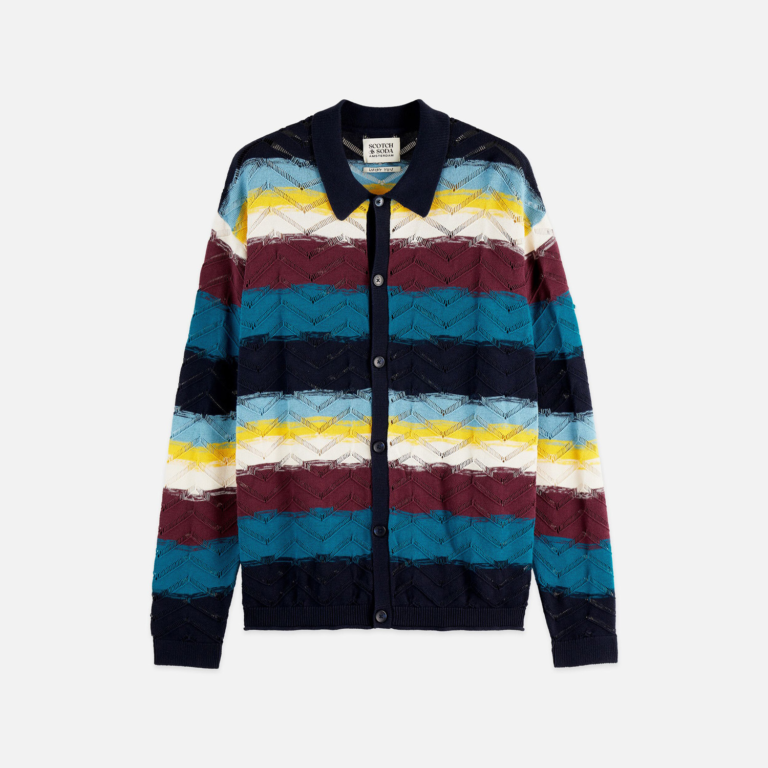 SCOTCH&SODA MEN'S OPEN STRUCTURE KNITTED CARDIGAN IN MULTICOLOR