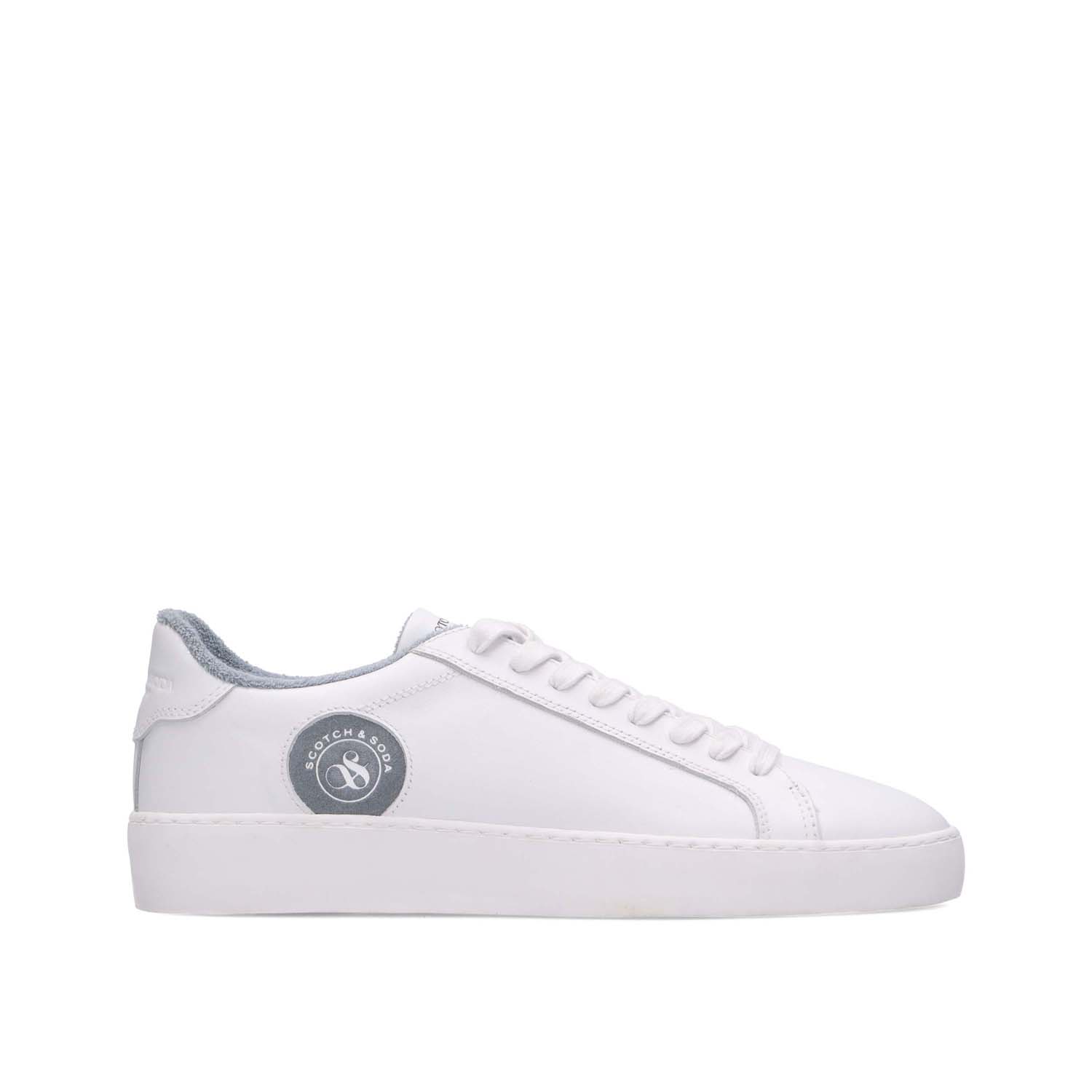 SCOTCH&SODA MEN'S PLAKKA LEATHER SNEAKERS IN WHITE