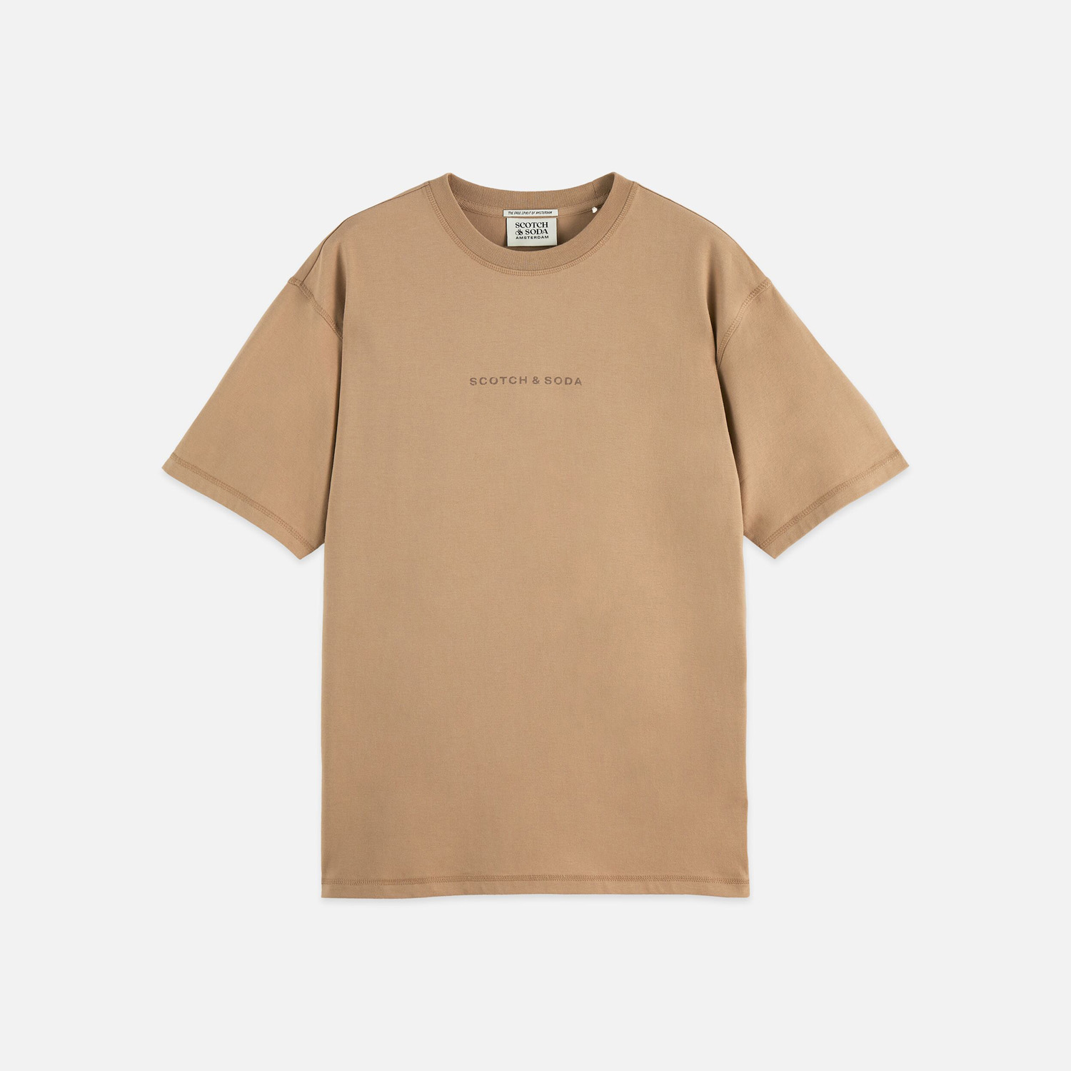 SCOTCH&SODA MEN'S SEASONAL CORE CHEST ARTWORK RELAXED-FIT T-SHIRT IN MEDIUM BEIGE