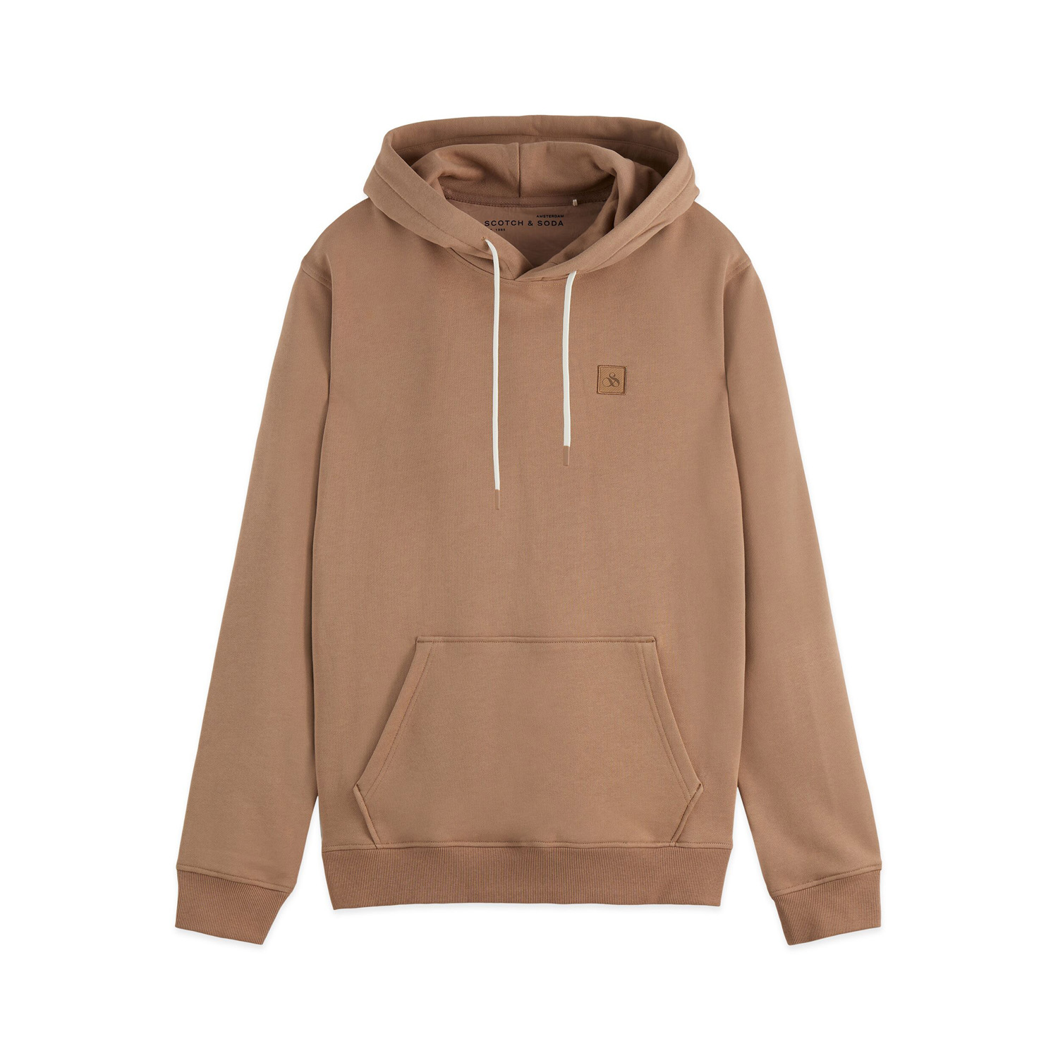 SCOTCH&SODA MEN'S SEASONAL CORE LOGO BADGE REGULAR-FIT HOODIE IN LIGHT PASTEL BROWN