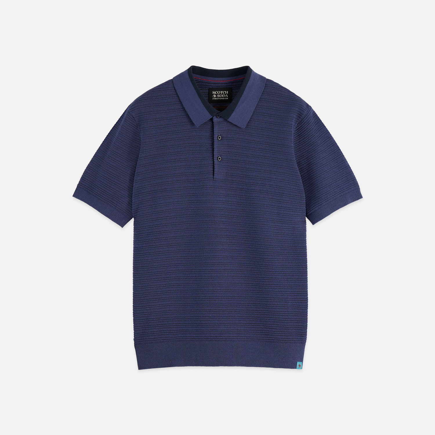 SCOTCH&SODA MEN'S STRUCTURED KNITTED REGULAR-FIT POLO IN MEDIUM BLUE