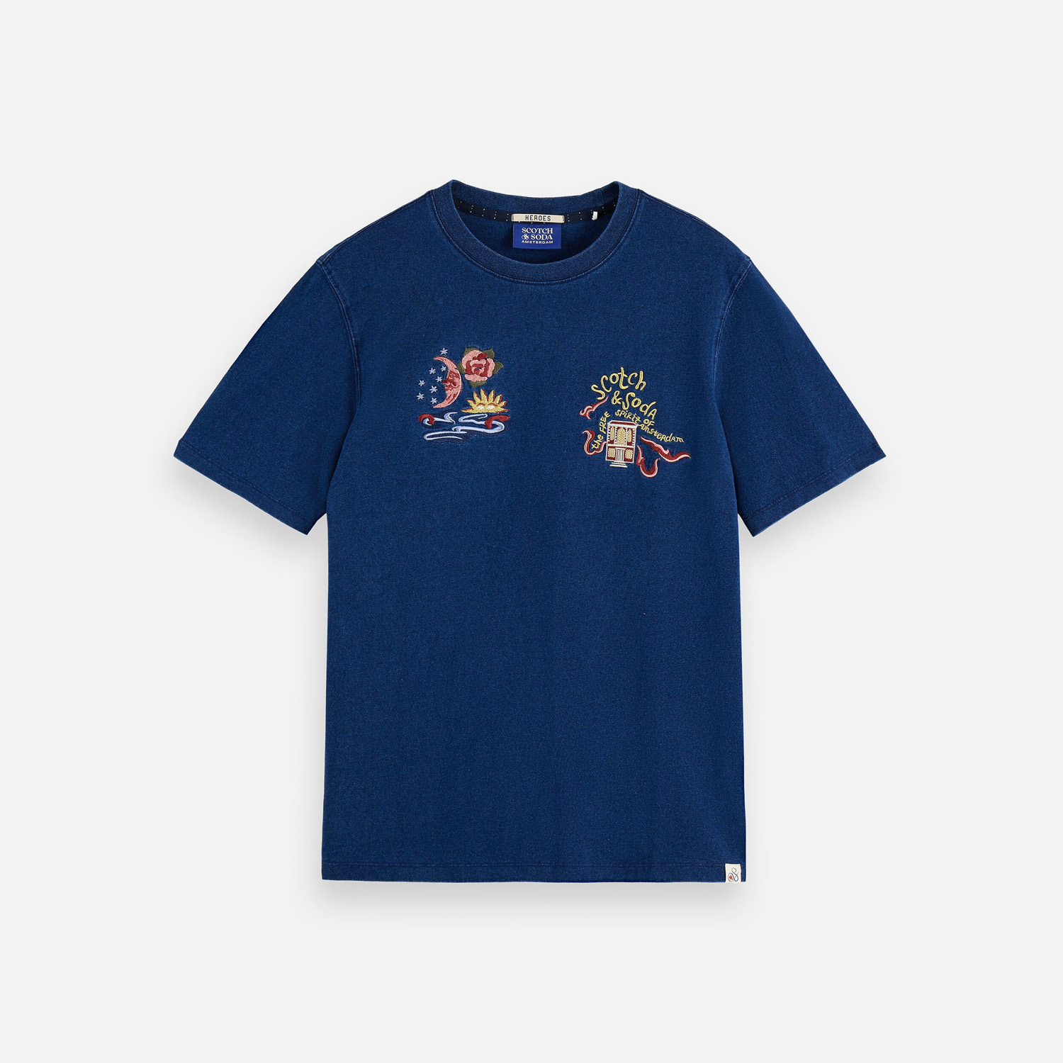 SCOTCH&SODA MEN'S THE 40TH ANNIVERSARY HEROES RELAXED-FIT INDIGO T-SHIRT IN NAVY