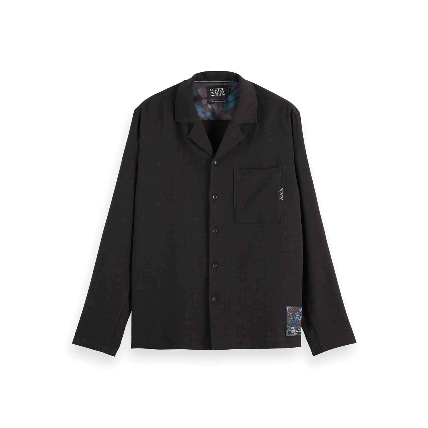 SCOTCH&SODA MEN'S TONAL JACQUARD RELAXED FIT SHIRT IN BLACK