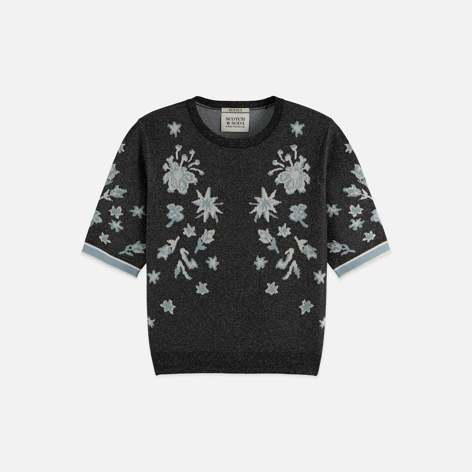 SCOTCH&SODA WOMEN'S 40 YEARS JACQUARD SHORT SLEEVE PULLOVER IN METEORITE