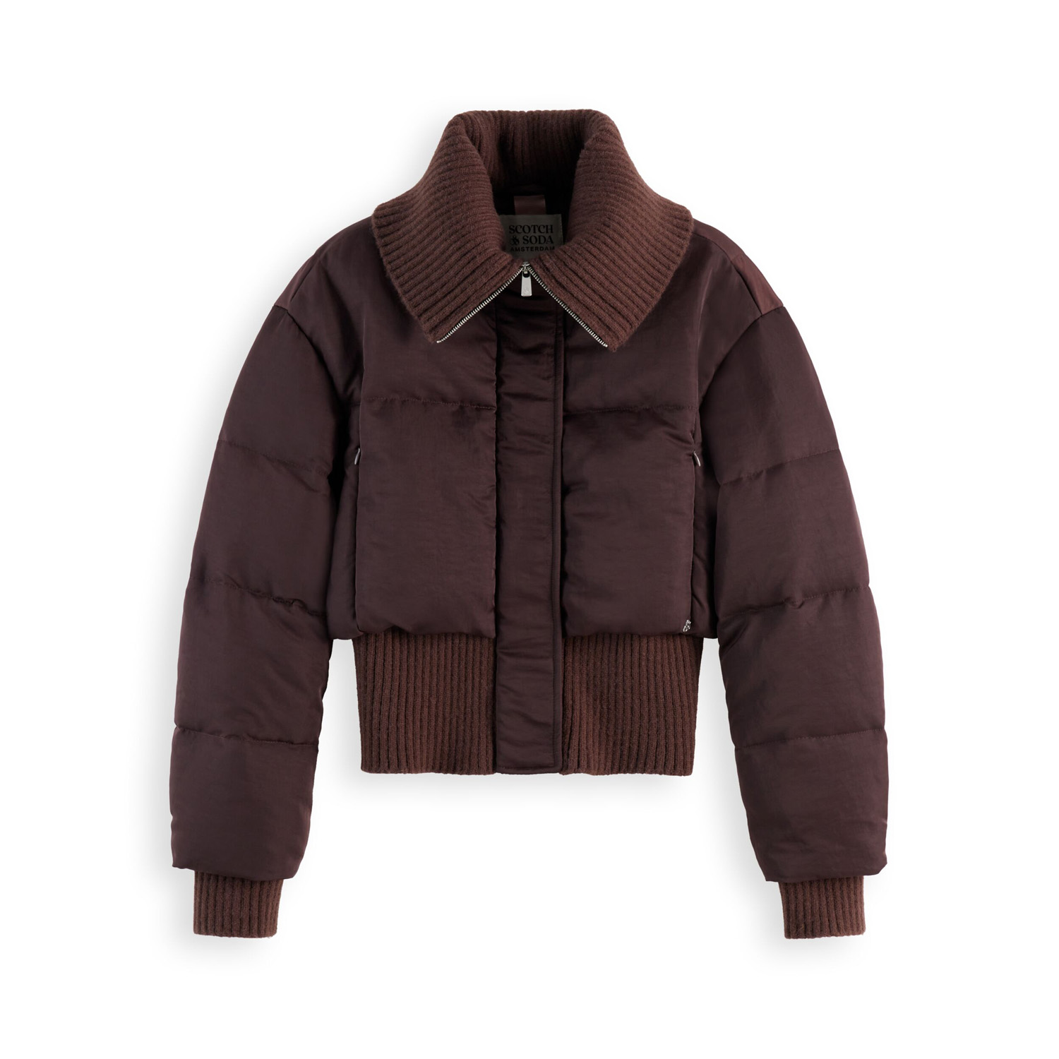 SCOTCH&SODA WOMEN'S AVIATOR COLLAR PUFFER IN CHOCOLATE PLUM