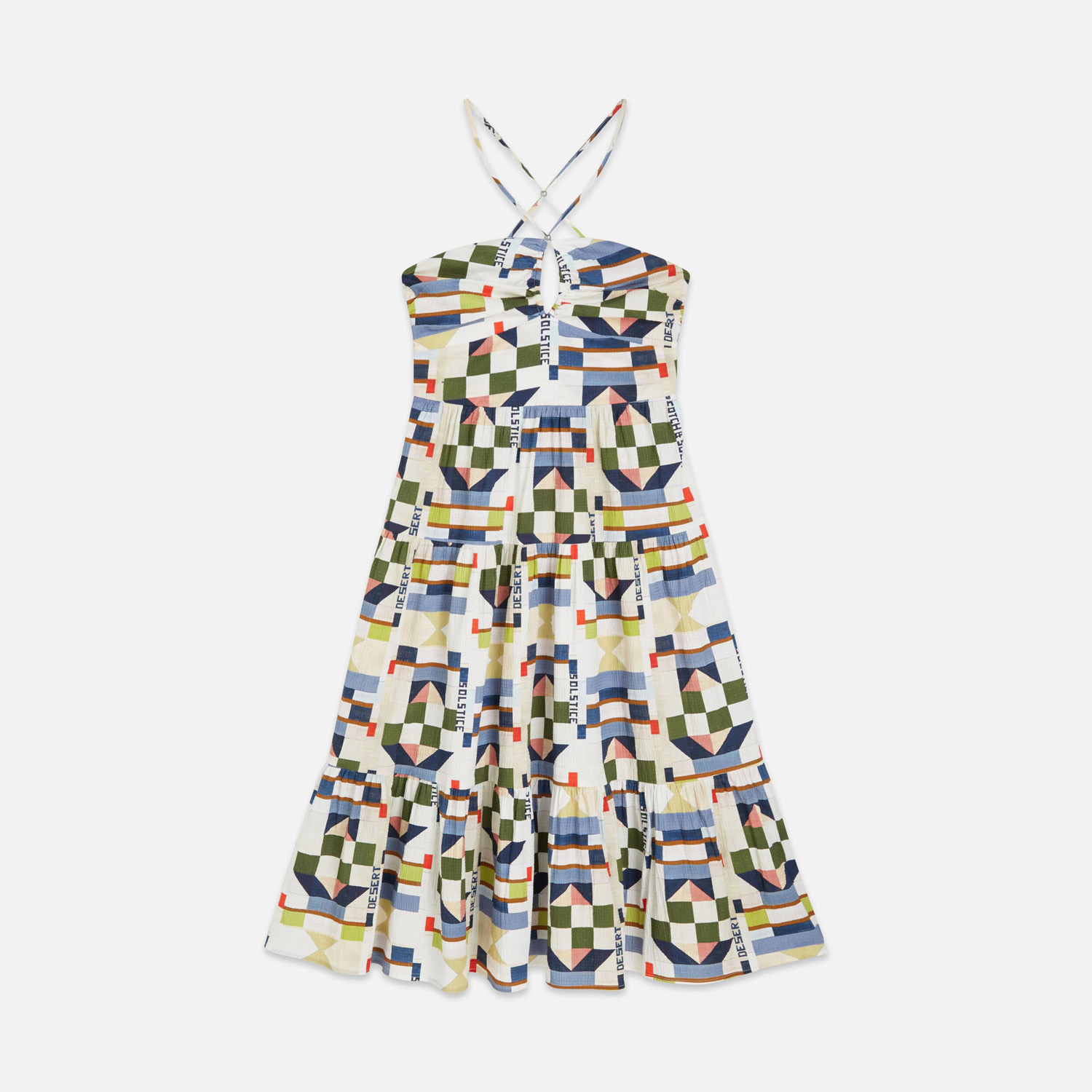 SCOTCH&SODA WOMEN'S COTTON SEERSUCKER KEYHOLE HALTER MIDI DRESS IN MULTICOLOUR