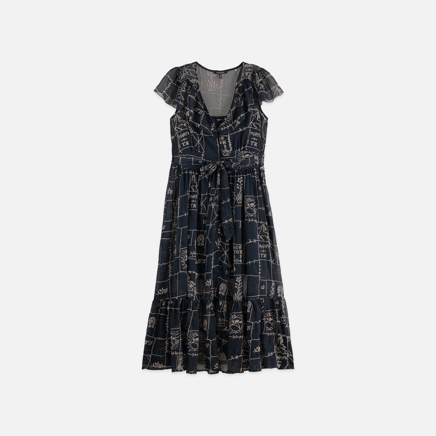 SCOTCH&SODA WOMEN'S CROSS-STITCH EMBROIDERED MIDI DRESS IN CARBON
