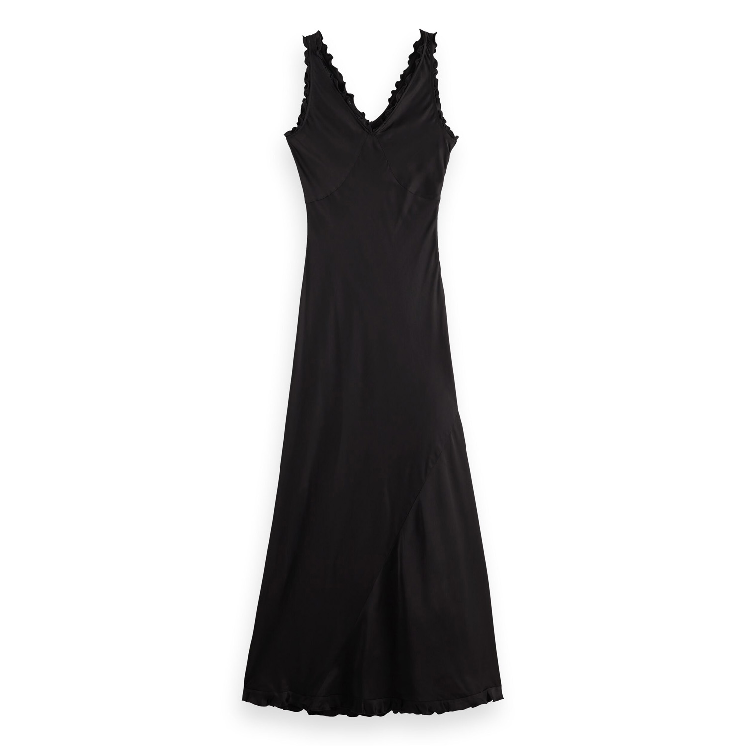 SCOTCH&SODA WOMEN'S MAXI SLIP DRESS WITH RUFFLED EDGES IN METEORITE