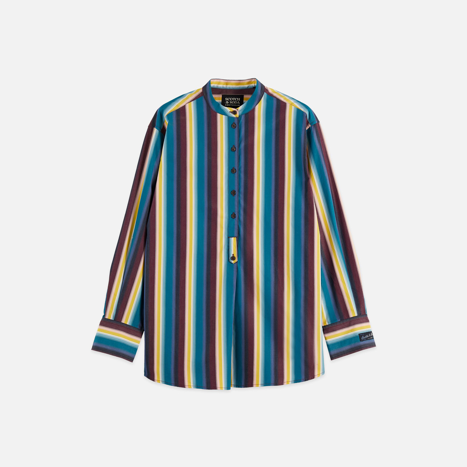 SCOTCH&SODA WOMEN'S RELAXED STRIPED SHIRT IN EL COSMICO STRIPE DEEP LAGOON